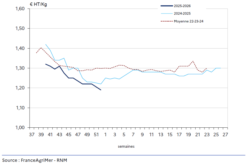 Les volumes sont satisfaisants dès le début de la saison, répondant à une demande présente. L’activité est particulièrement soutenue pour Pâques, avec des volumes importants en avril et une bonne fluidité du marché malgré un épisode de « goutte froide » qui ralentit brièvement la production.