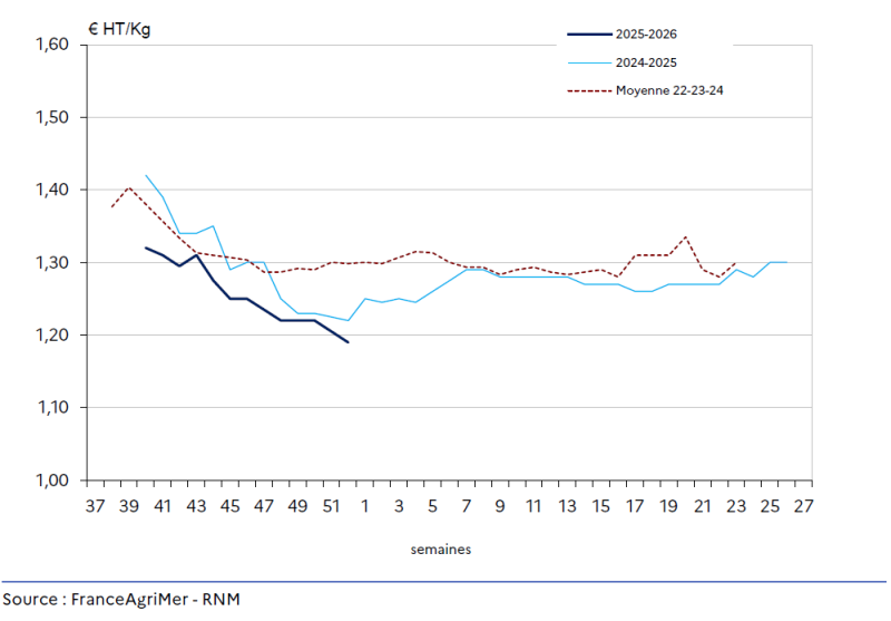 Novembre confirme un marché calme, avec une demande atone malgré le retour des collectivités. Les promotions tentent d’écouler les stocks, mais la consommation est en retrait, affectée par le pouvoir d’achat en baisse.