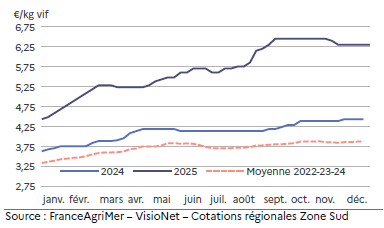 La production en baisse, les prix légèrement supérieurs à ceux de 2024