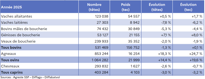Note de lecture : De janvier à décembre 2025, 18 748 veaux de boucheries de race viande sont