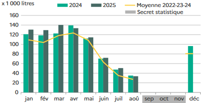 Graphique 5 : Livraisons de lait de chèvre en Nouvelle-Aquitaine