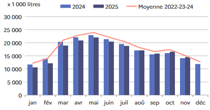 Graphique 1 : Livraisons de lait de vache en Nouvelle-Aquitaine