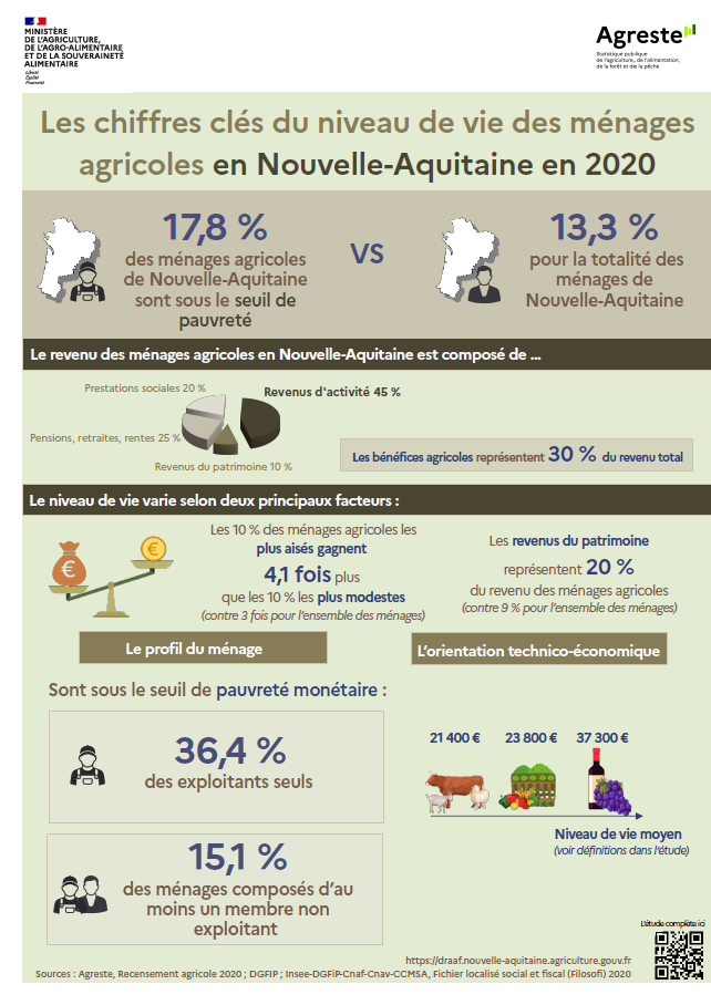 Les chiffres clés du niveau de vie des ménages agricoles en Nouvelle-Aquitaine en 2020