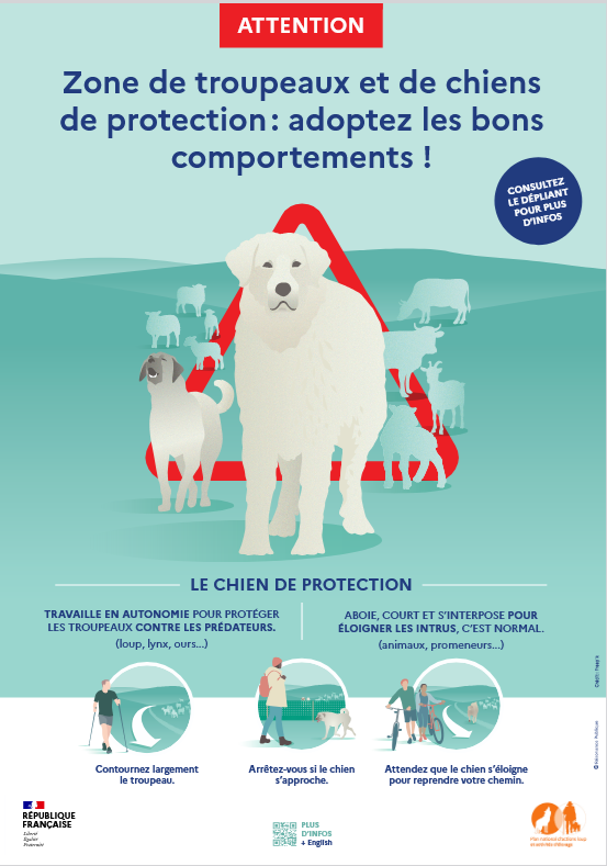 Retrouver tous les supports de communication disponibles et vidéos sur les chiens de protection sous le site du ministère de l’écologie https://pna-loup.developpement-dura...