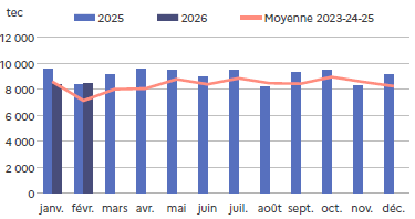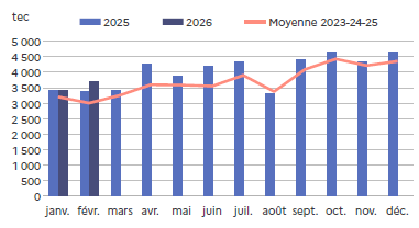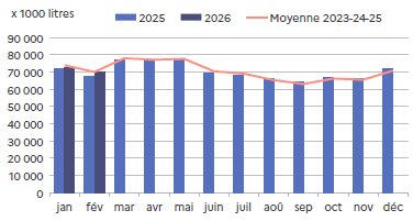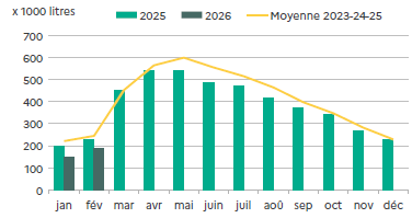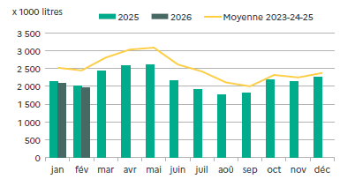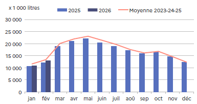 | Février 2026 | Volume (1000 l.) |
