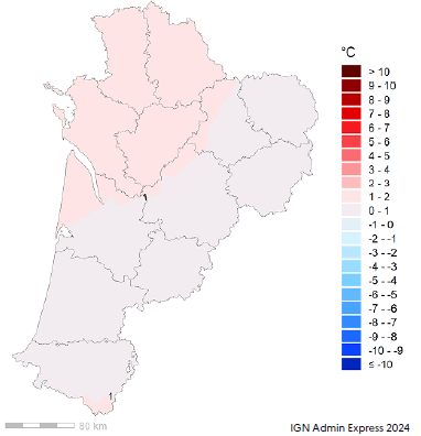Carte 3 : Écart entre la température moyenne de mars et la moyenne mensuelle de référence (1991-2020)