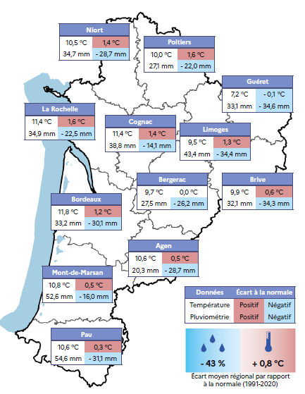 Tableau 1 : Cumul et écart par rapport à la normale 1991-2020